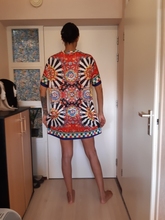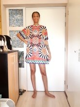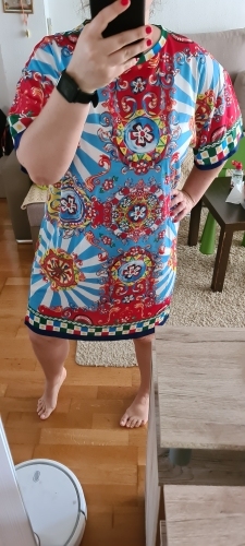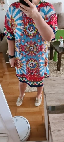reçu en 3 semaines pour la France. couleurs conformes à la photo. tissu épais, la robe ne pourra pas être protée par de forte chaleur. tour de cou pas très large , col type Mao. Pris un xl pour un 40-42 en france, taille ok, un peu large masi avec une ceinture ce devrait aller