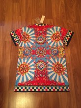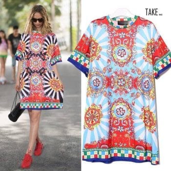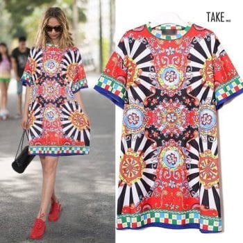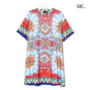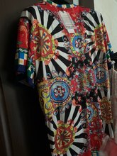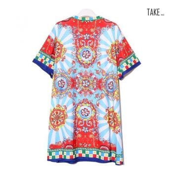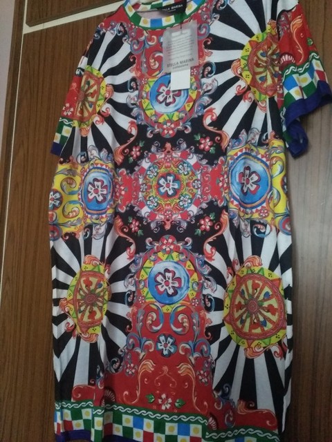 The dress is the same in colorful as the one in the photo. The only negative is that the one size is huge. Too big and resembles a large.